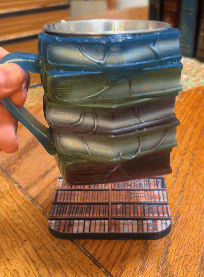 • My new favorite reading mug. Keeps my tea warm and looks gorgeous on my bookshelf. Five stars